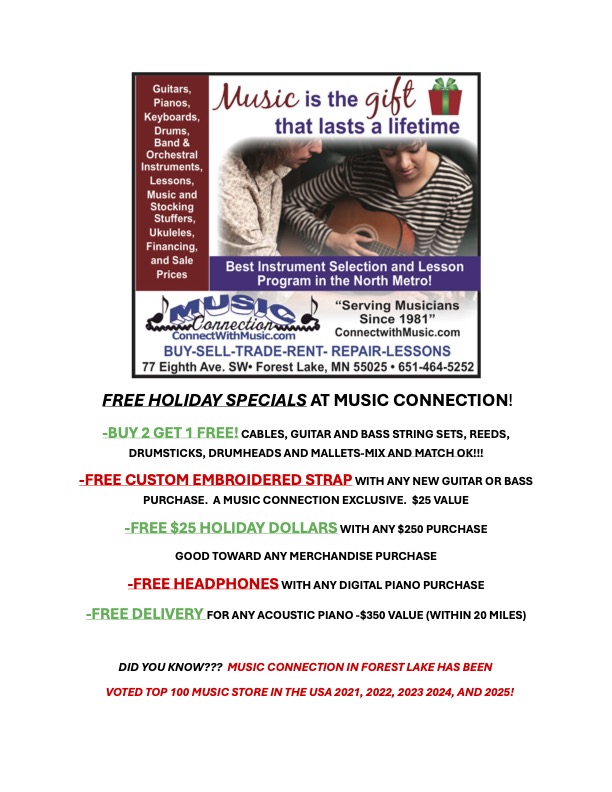 Music Connection carries a complete line of musical instruments and accessories. Currently there are no online items or specials in this category. We are adding products to our online store daily!