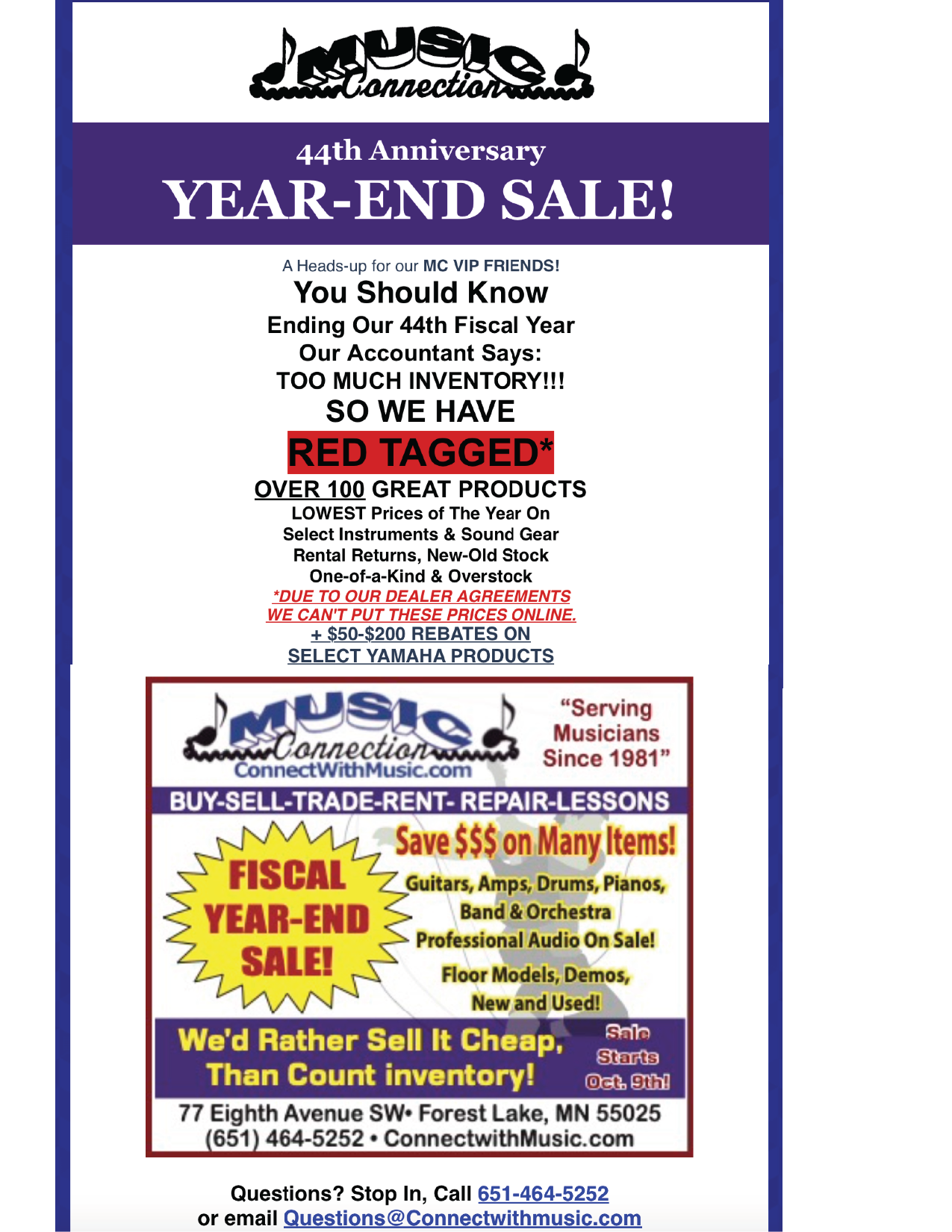 Music Connection in Forest Lake, MN has been named a Top 100 Dealer by the National Association of Music Merchants (NAMM), the global association of music instruments and pro audio products. The award honors retail music dealers who demonstrate exceptional commitment to their stores, neighborhoods, and customers and share in a vision to create a more musical world through their local communities. Music Connection is proud to announce that we received this award in 2021, 2022, 2023, 2024 and 2025!